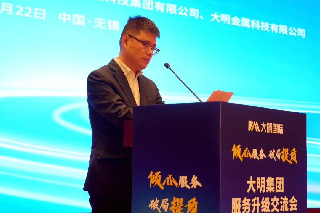 春潮涌动启新程,聚力同心向未来。4月22日,大明集团聚焦“倾心服务·破局提质”召开不锈钢材料商贸易服务升级交流会。来自无锡、靖江地区的重要贸易合作伙伴齐聚交流聚共识,共商合作赢未来。太钢华东公司总经理王强、北港新材常务副总经理黄磊、大明国际常务副总裁钱立、江苏大明总经理陈钟炜出席会议,大会由集团品牌策划总监张凯彬主持。01致辞欢迎同心致远,聚力前行大明国际钱立常务副总裁充分肯定与合作伙伴并肩作战的珍贵情谊、强调了交流会初衷,并表示大明深耕不锈钢领域、服务合...