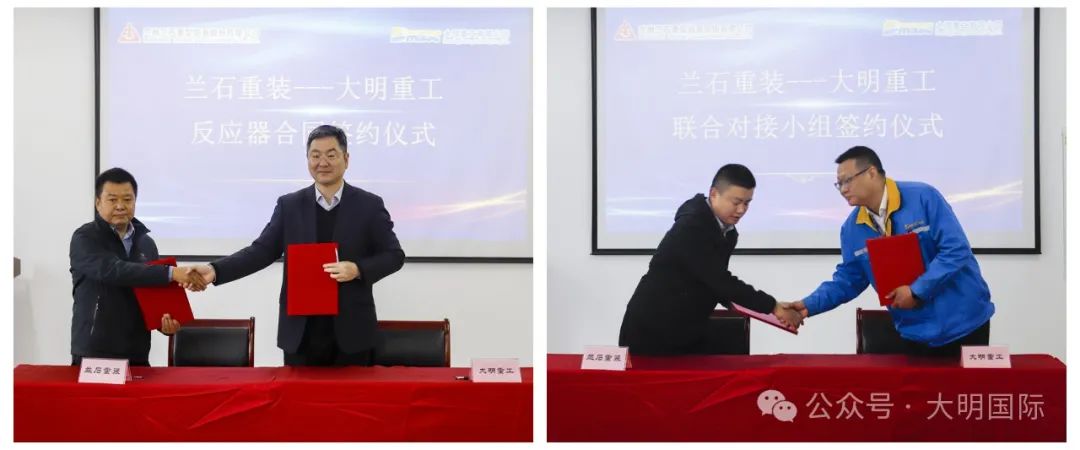 陈宁总裁、吕祥文副总经理在与会领导的见证下,共同为兰石重装沿江制造基地揭牌。双方还举行了项目和对接小组签约仪式。双方还回顾了合作历程,并围绕如何深化战略合作、确保项目保质保量交付,以及满足项目制造需求、技术工艺标准、智能化数字化工厂建设、党建联动等主题进行了深入交流,一致表示将进一步加强交流与协作,通过优势互补,合力推动我国高端装备制造业的高质量发展。此次揭牌及签约,是双方友好合作和多领域结硕果的直接见证,将进一步提振双方共赢发展的信心和决心。双方将以此为契机,携手打造合作示范的标杆,为稳固战略合作关系和装备制造业的发展不懈努力、不遗余力。吕祥文副总经理一行还实地参观了大明重工生产车间和物流码头,进一步了解了大明在材料供应、先进设备、技术服务、物流运输等方面的优势。