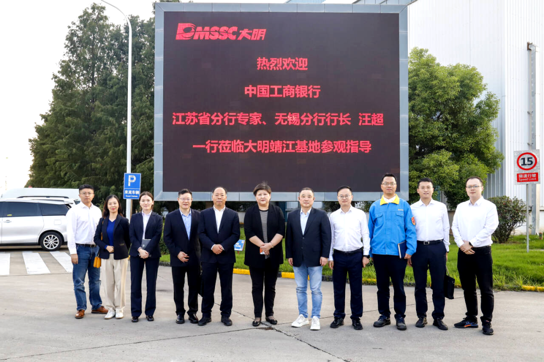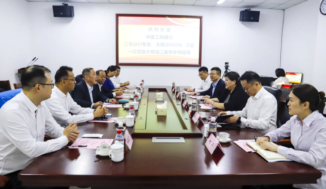 10月9日,中国工商银行江苏省分行专家、无锡分行行长汪超,无锡分行副行长陈晓锋与高级经理兼营业部总经理徐洪春、公司部总经理施腾亚一行到访大明。大明国际董事会主席周克明、副主席邹晓平、大明重工集团总裁陈宁、集团财务总监曹佩、集团资金总监华立仁热情欢迎工行领导一行的到访,并陪同参观交流。