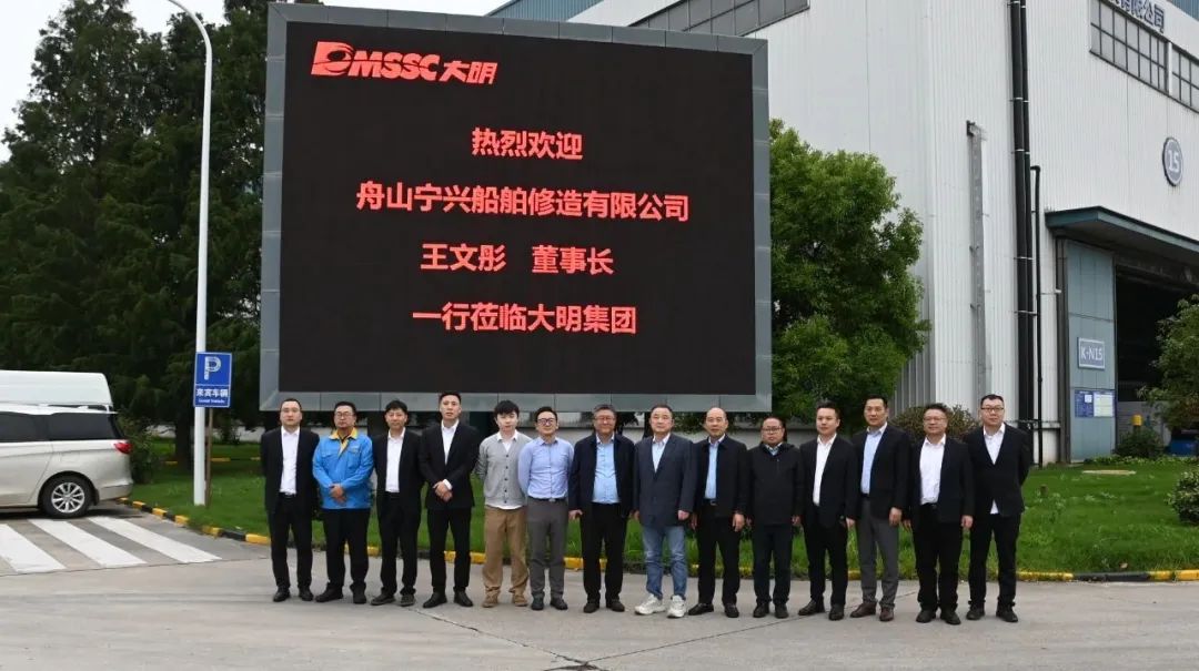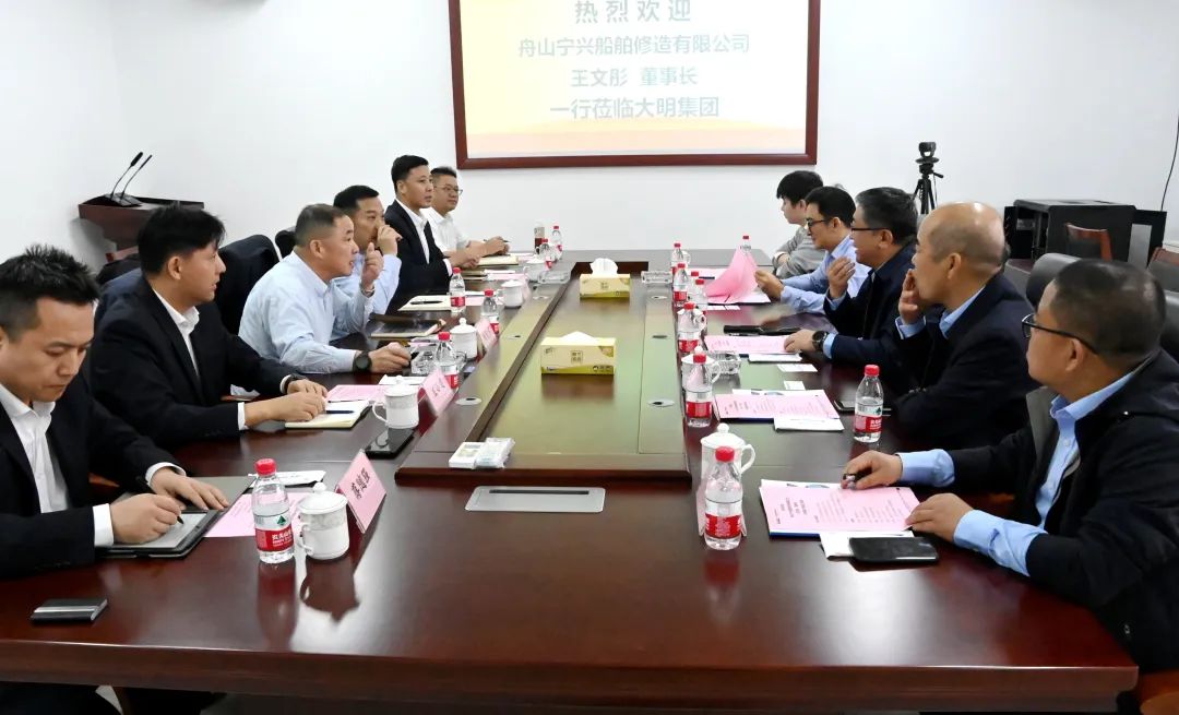 10月20日,舟山宁兴船舶修造有限公司董事长王文彤、总经理江创宏、宁波宁兴投资部总经理盛斌、数字化运营总监李鹏等管理层一行来访大明集团。大明国际董事会主席周克明、集团技术总监王小建、集团不锈钢事业部总经理陈钟炜、集团碳钢事业部总经理蒋随强、靖江大明总经理邓梁峰、浙江大明总经理周晓栋、集团深加工业务部总经理蒋润洲、大明精工副总经理兼重工集团营销总监王庆伟等热情接待,并陪同参观交流。王文彤董事长一行在周克明主席的陪同下,首先实地参观了大明靖江基地及长江码头,实地见证了大明的丰富材料资源、先进设备集群、创新技术服务以及便捷物流运输等“一站式”服务实力。