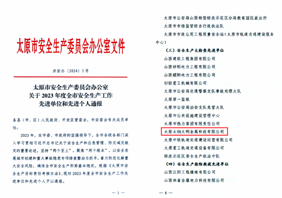 太原大明入选太原市重点产业链“链主”企业、太原市“尖草坪区模范单位”称号,同时安全管理上新阶获市级肯定!
