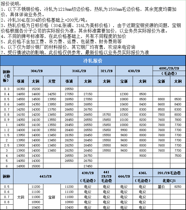 不锈钢报价